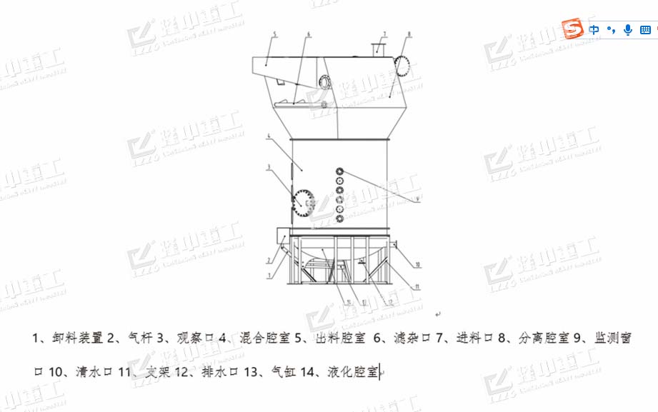 由于從下方注入的流化水產生的湍流運動,使得陷在致密流化床中的粗、細低密度顆粒向上分選進入上方的薄板腔;高密度顆粒在重力作用下沉降到流化床底部,并遷移到液化腔室底部的氣缸。工作人員可通過智能監測遠程控制監測其監測窗口的壓力傳感器和固含量傳感器的數值,實時監測LSF數據。當達到設置值時,通過控制卸料裝置開啟/關閉氣缸,進行卸料。