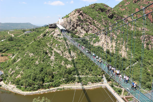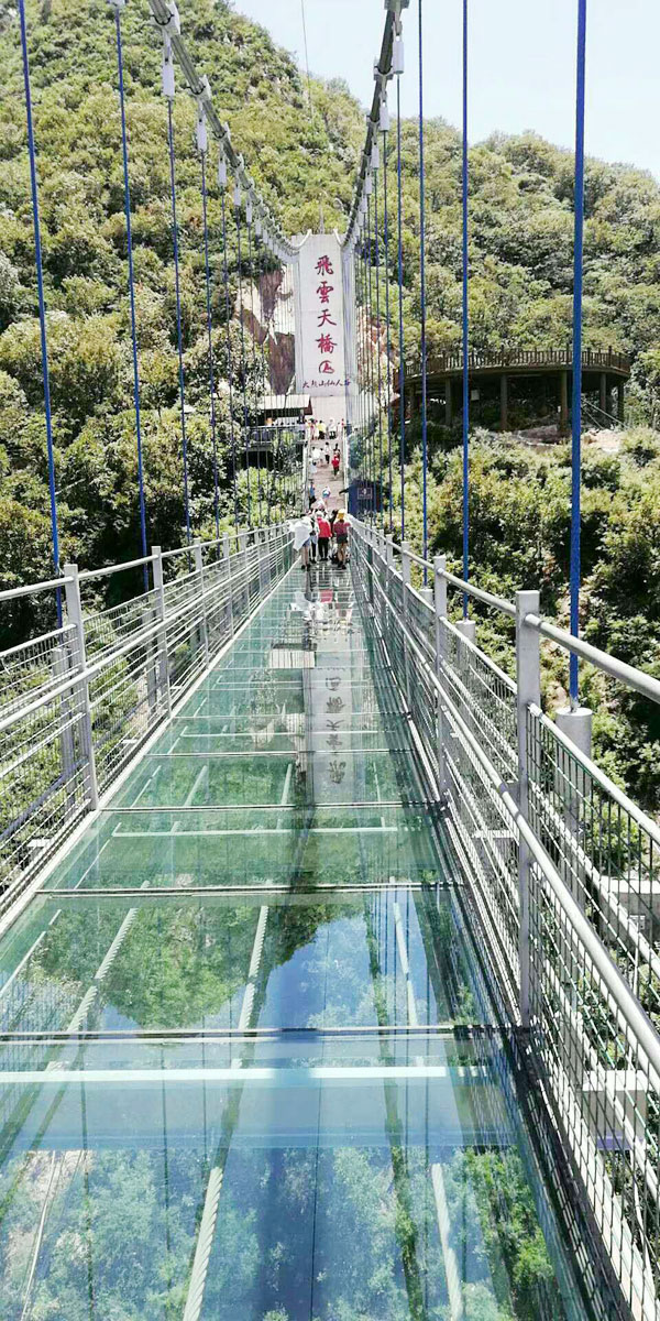 玻璃天橋——是中原地區跨度*長的全透明高空3D玻璃天橋,橋長266米,垂直落差106米,一橋飛架兩山,現代建筑藝術與自然山水景觀相存相依,.呈現。