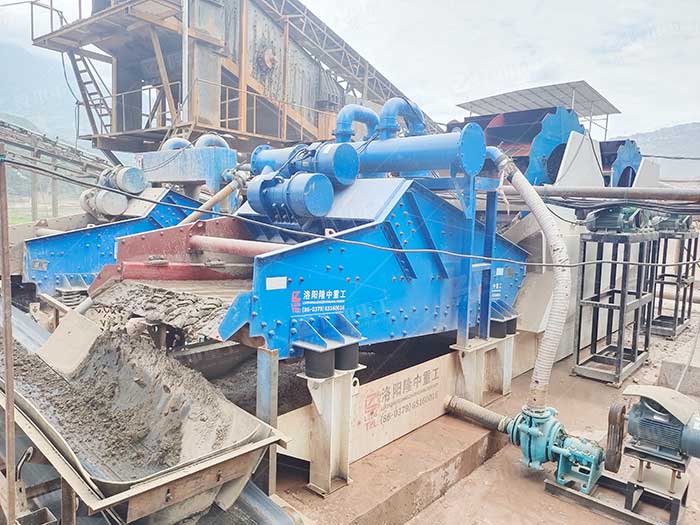 在制砂生產線的后部位,對于含泥量大的沙子或是含沙量大的砂水混合物,僅配置洗砂機可能達不到成品砂的要求,而且還有一個細砂流失嚴重的弊端,要解決這個問題,就要用