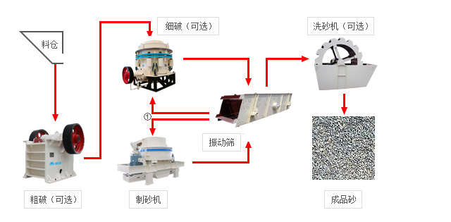 隆中廠家為安徽客戶配置的制砂生產線設備由鄂式破碎機、沖擊式破碎機(制砂機)、振動篩(圓振動篩)、洗砂機、細砂回收機、皮帶輸送機組合而成。隆中客戶根據不同工藝要求