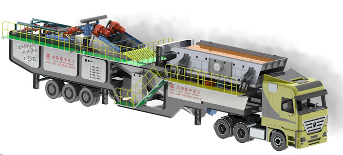 移動式砂子篩洗是傳統機型的升J,將振動篩放置在船型鋼架結構組成的機動載體,到達作業現場后,液壓螺栓緊固即可作業,工作完畢無需拆裝,還是由半掛車拉走即可,非常適合場地不固定的篩沙作業。