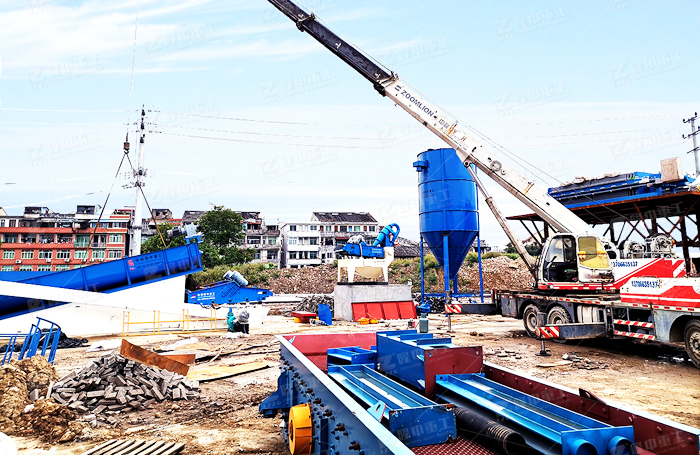 細砂回收機,搭配輪斗式洗砂機工作現場